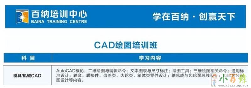 建筑CAD、室内CAD、室外CAD、模具/机械CAD等绘图培训班:学会为止,免费复训原文www.xbaixing.com。